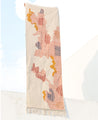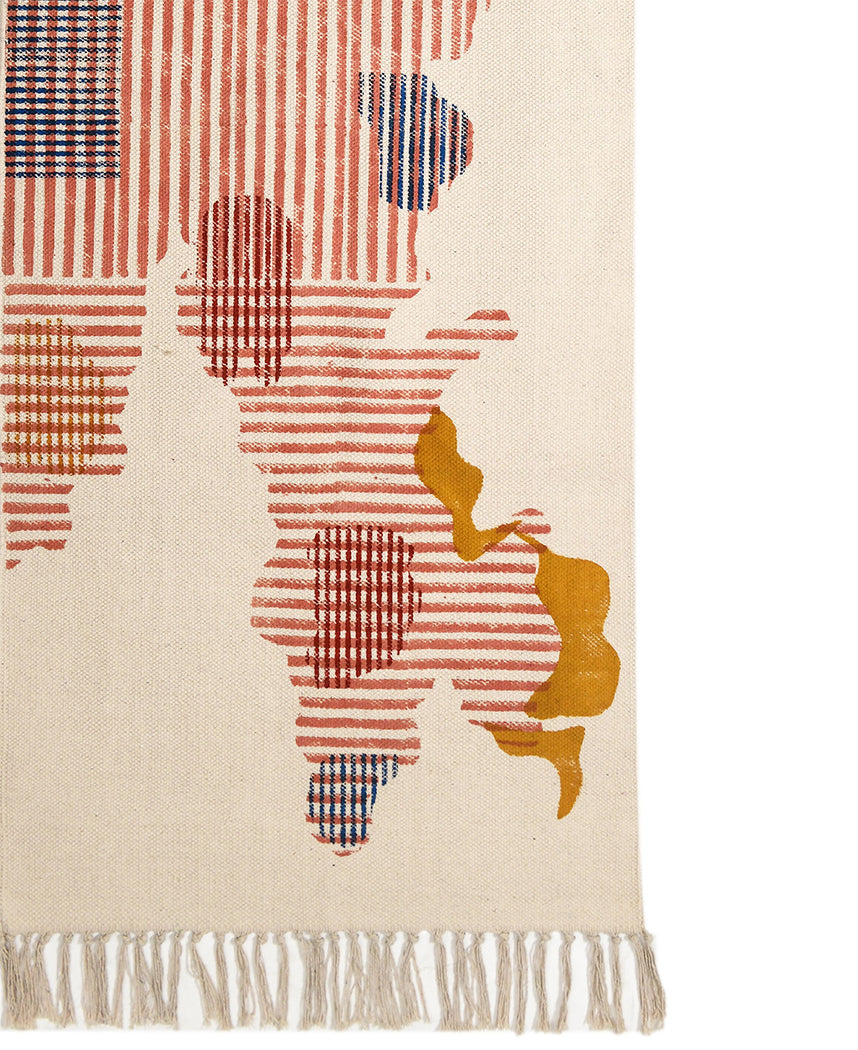 An abstract rug with tasseled edges inspired by the shifting sands of Rajasthan's deserts.