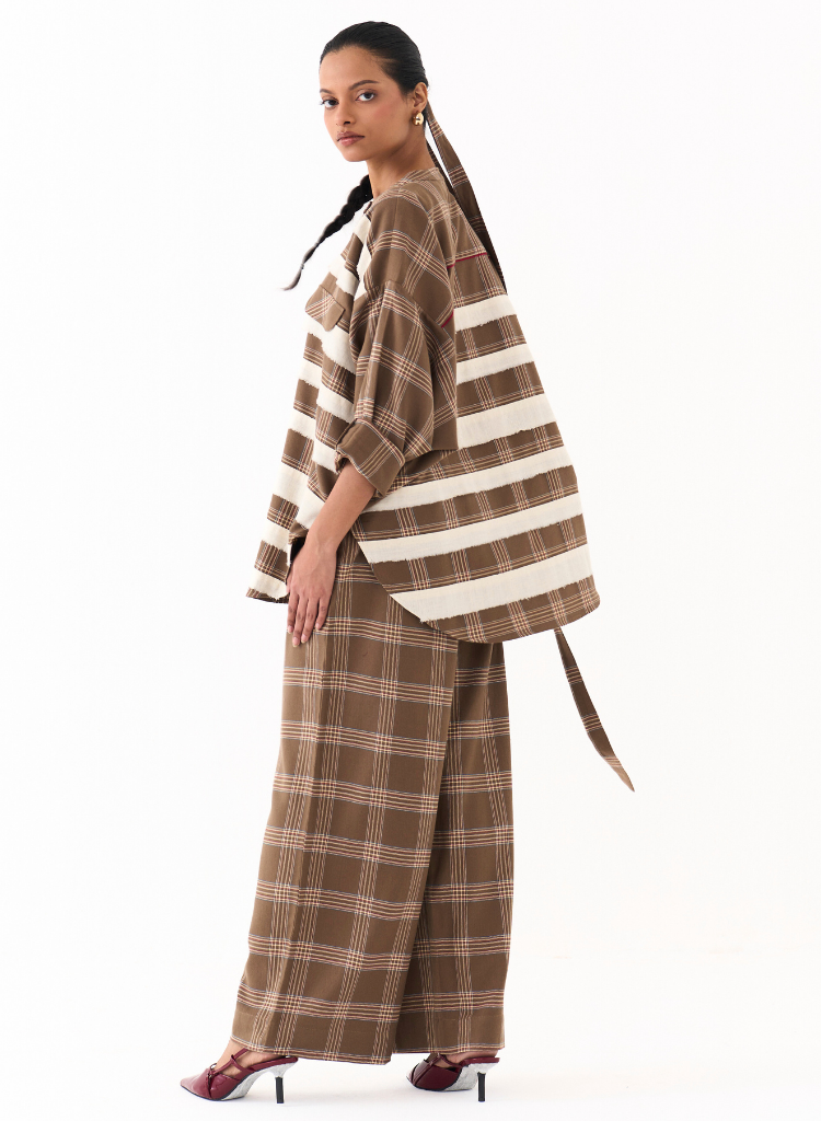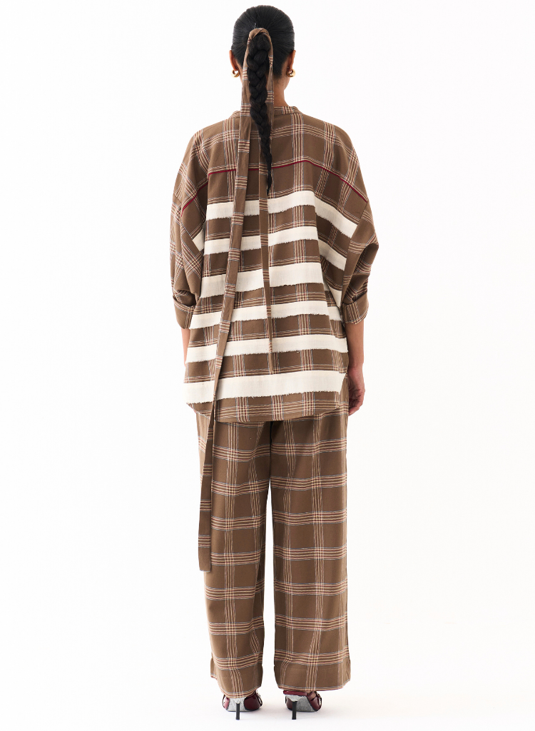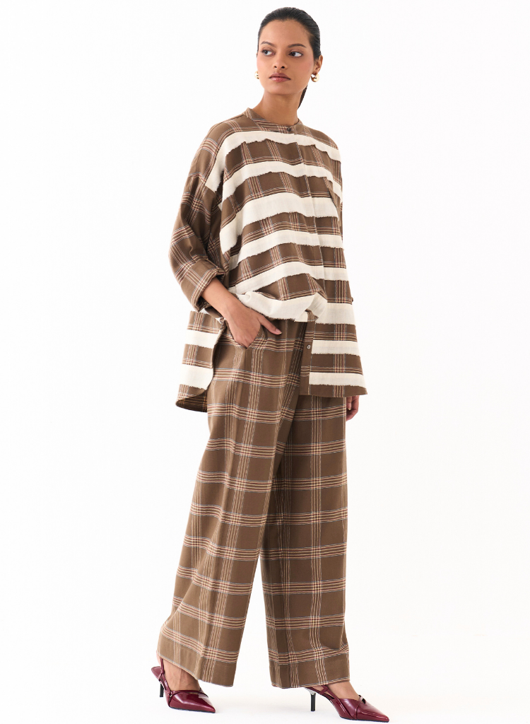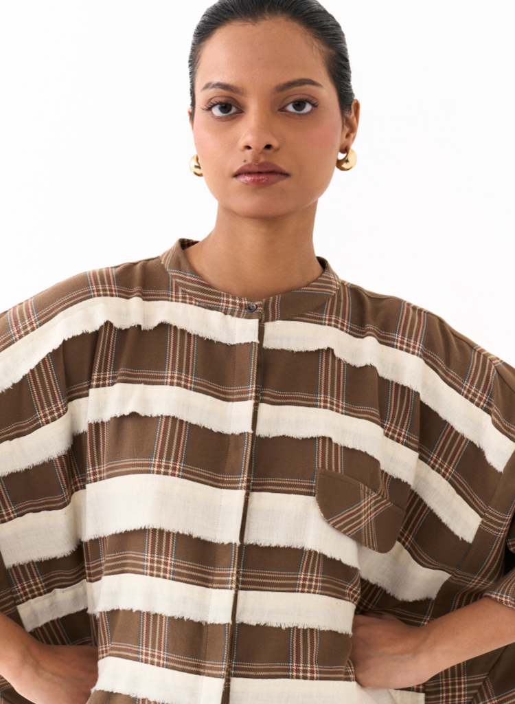A loose-fitting shirt with a front patch detail featuring Dolman sleeves and a concealed front placket. Length 24". The model is 5'7" & is wearing size S.