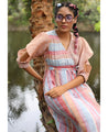 Made in blend of handwoven linen and tussar silk. This fabric is handspun and handwoven in small batches. Variations in the colour, texture and finish are inherent to the process, making each piece unique.
