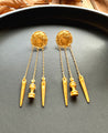 A pair of textured dangler earrings with dumble and dagger charm details. Length 4".