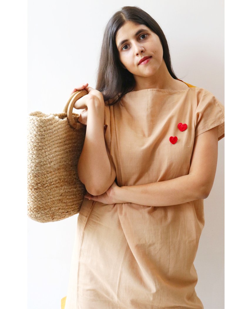 Heart shaped brooch in classic colours. This piece of jewelry is handmade with a crochet needle and a coloured yarn by women in suburbs of Delhi. Dimensions - 2.5 x 3 cm.