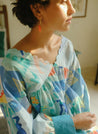 A casual mini summer dress featuring tiny embroidered sun motifs on the the back and cuffs, complemented by unique bow details on the cuffs and an elegant collared back. Length 35". The model is 5'8" and is wearing a size S. Made in organic cotton.