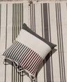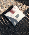 A hand-block printed cushion cover featuring abstract prints on the front and back. Dimensions - 12" x 12".