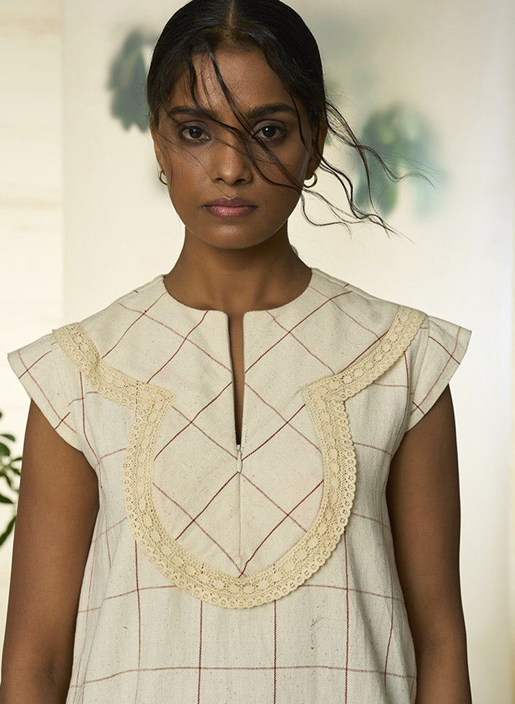 Step into playful elegance with this fun and feminine dress! It boasts a beautifully designed yoke adorned with delicate lace details, adding a touch of sophistication. Length 33". The model is 5'6" and is wearing a size S.