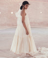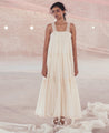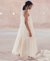 A generously gathered tiered maxi dress with dainty lace straps. Length 54". The model is 5'8" and is wearing size S. Made in 100% cotton with cotton lining.