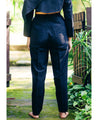 Pleated straight leg trousers with a tapered fit. Made in handwoven cotton with a zip fly closure, back elastic and inseam pockets. Length 39.5". The model is 5'5" and is wearing size S.