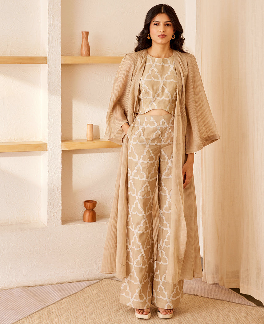Made in Chanderi cotton. This product is handwoven and handcrafted. Variations in weave, colour, texture and finish are inherent to the process making each piece unique.