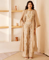 An open front kimono style overlay with all-over pin-tucks and wide sleeves. Length 51". The model is 5'6", and is wearing size S.