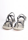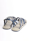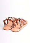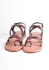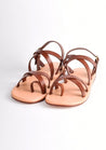 This style features over-foot criss-cross straps with a toe thumb strap and an adjustable brass buckle back strap that grips your foot firmly.