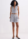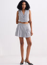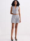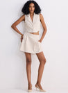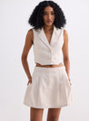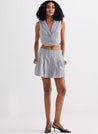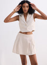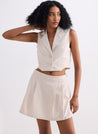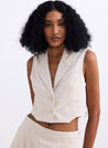 A cropped vest featuring a front button placket and a notched collar look. Length 17.5"-22" based on the size. Made in cotton.