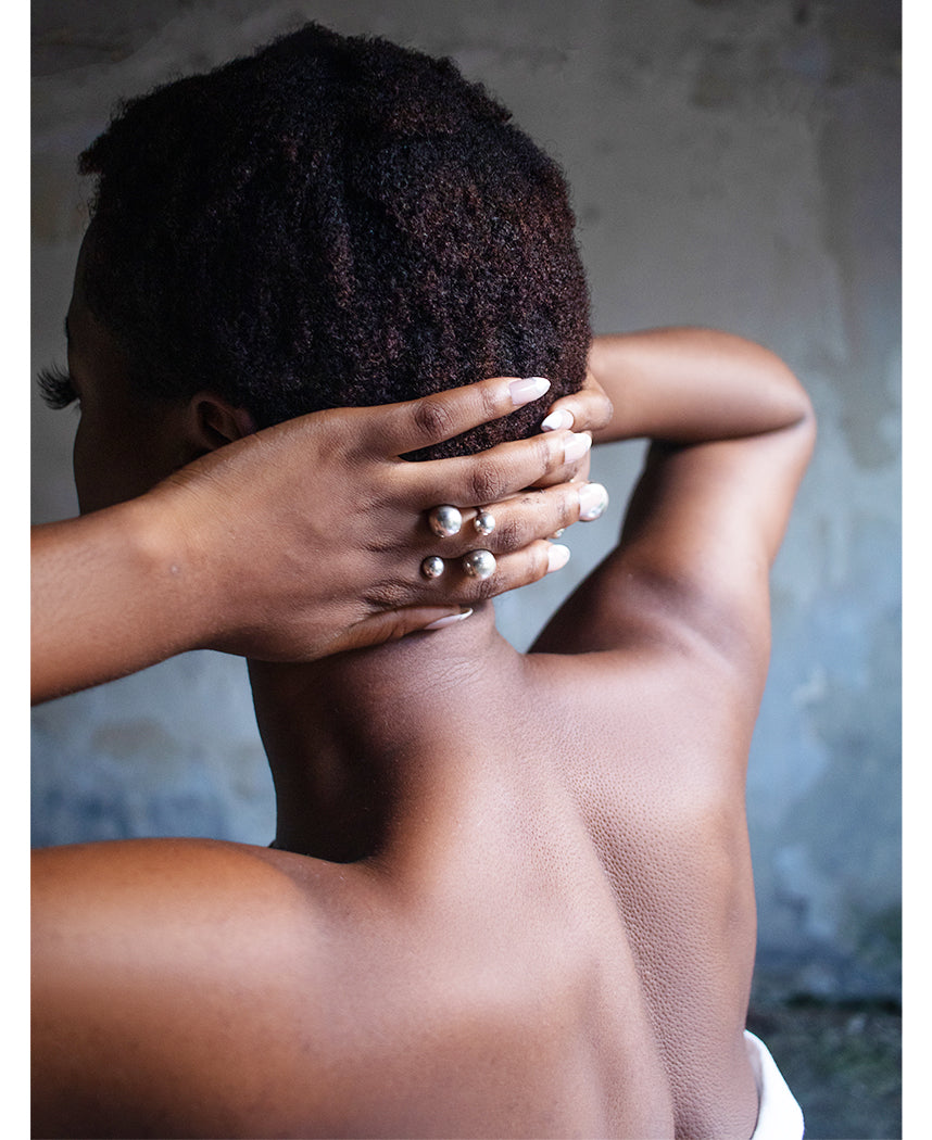 An art deco inspired ring featuring smooth spheres in an open style. Dimensions 2.5cm x 2.5cm. Both styles are made in silver while style in gold is made in gold plated silver.