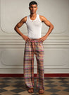A pair of trousers with relaxed-leg pattern and elasticated waistband featuring side pockets and drawstring closure. Length 40". The model is 6'2" and is wearing a size XS.