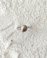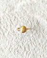 An adjustable ring with textured stone detail, handcrafted in brass. Diameter 1.3 cm.