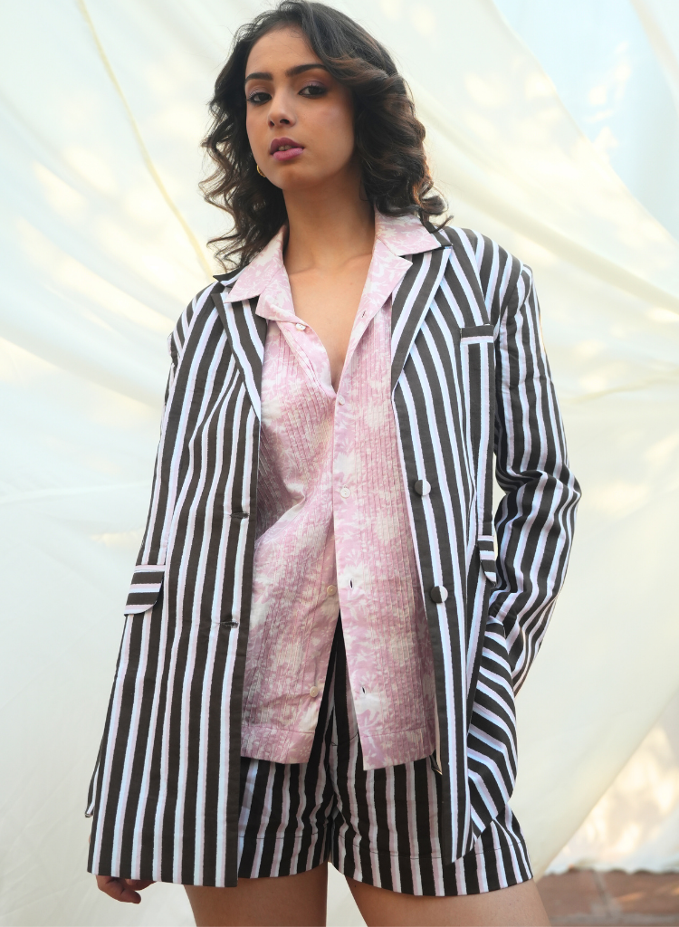 Cut in a relaxed wide-leg shape that moves lightly through the day and a soft front pleat giving gentle definition, while the elasticated back waistband adds comfort and flexibility. Length 14". The model is 5'8" and is wearing a size XS.