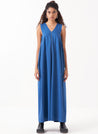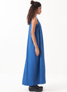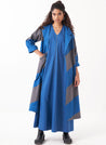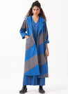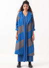 A two-piece set pairing the Diagonal Appliqué Jacket and the Square Armhole Dress. The long jacket with appliqué detail features a lapel collar, a centre front opening, flap pockets and a back slit. Length 48". Made in cotton Twill and Melange. The regular fitting maxi dress with piping detail features a V-neck and elasticated armholes. Length 53". Made in cotton Poplin.