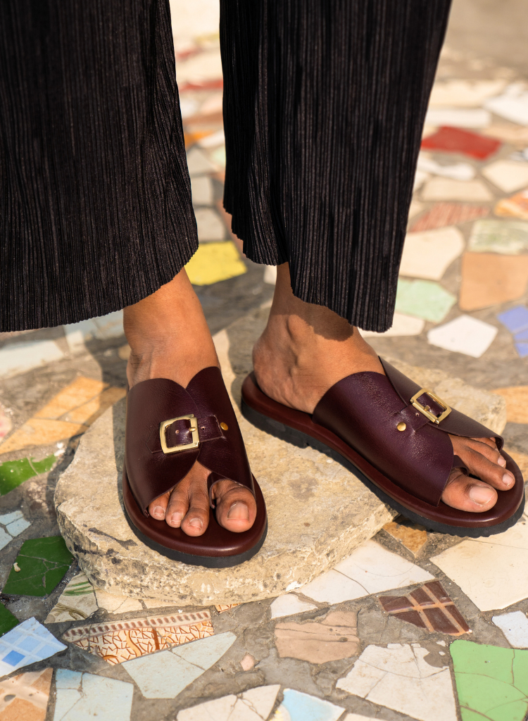 Elevate your style with the Envelope Slides, designed for minimalist elegance. These slides feature a sleek envelope-like overlay with a gold buckle and a comfortable toe loop. The cushioned sole ensures all-day support, perfect for casual outings or weekend escapes.