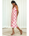 A wrap style shift dress with a floral print, deep V-neck, and front button placket. Length 48". The model is 5'10" and is wearing size S.