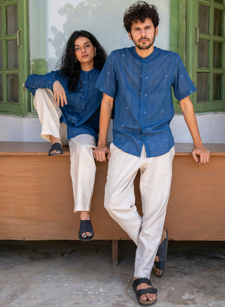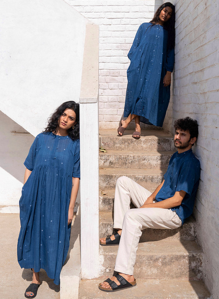 Made in handwoven cotton, dyed using traditional indigo-dyeing technique.