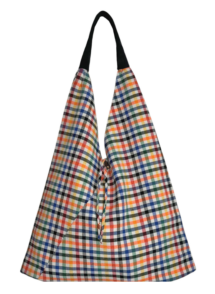 Exceptionally lightweight bags that slips perfectly under the arm, securing its opening. It has a string tie closure, and a small flat pocket inside. It’s a great bag for your regular trips to the park, beach or an outing in the city.