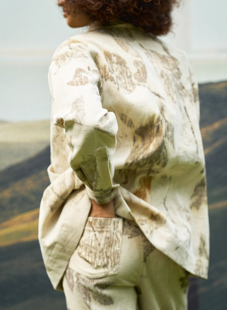 Made in organic cotton corduroy, eco printed with natural leaves.