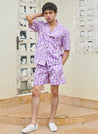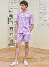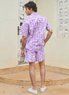 A hand block printed shirt featuring a clamp collar and a front button placket with wooden buttons. Length 28.5”. The model is 6ft and is wearing a size S. Made in cotton, dyed using chemical free dyes. This piece is hand block printed and handcrafted in small batches. Variations in colour, texture, print and finish are inherent to the process, making each piece unique.