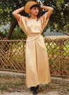 A two piece set pairing the Hazel Top and the Mia Skirt. The oversized flowy top features a round neck and kimono sleeves. Length 22", Bust - XS-L -54", XL-6X -66". The matching midi skirt with a knot detail features an elasticated back. Length 32". The model is 5'5" and is wearing size S.