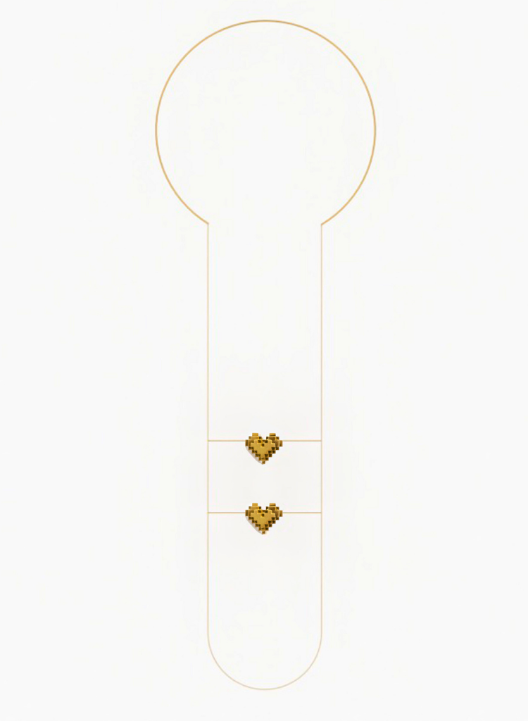 Heart Stack is a dual-life drop, a love bar loaded and layered. Two pixelated hearts float in formation, suspended in gold like checkpoints on a timeline.