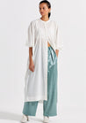 A pair of high-waisted wide-leg pants with pleat details in the front featuring side pockets and a fitted waist. Length 40". The model is 5'7" & is wearing size S.