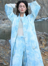 A pair of quilted trousers with tie-dyed detail featuring a fitted waist and inseam pockets. Length 38". The model is 5'9" and is wearing a size M.