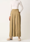 A pair of broad pants with inverted box pleat detail featuring a fitted waist and inseam pockets. Length 41". The model is 5'8" & is wearing size S.