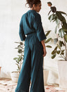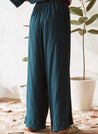 A pair of wide leg pants with chic broad folds at the bottom featuring a half elasticated waistband and inseam pockets. Length 43". The model is 5'8" and is wearing size S.