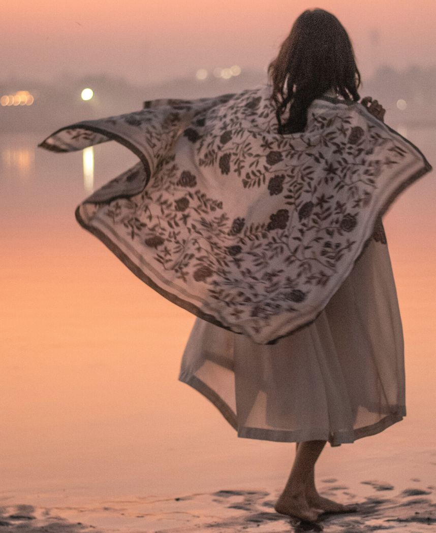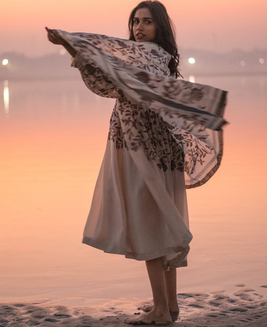A hand-block printed stole featuring floral motifs. Length 2 meters.