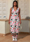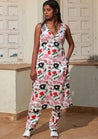 A two-piece set pairing a printed tunic and a matching printed pants. A printed sleeveless long tunic with a straight-fit and side slits features a V-neckline. Length 44”. The relaxed, straight-fitting pants with matching print and an elasticated waistband features side pockets. Length 39”. The model is 6ft and is wearing a size S.