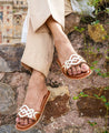 The Jharokha Sandals features geometric gold details on the upper strap. Handcrafted in vegan leather with cushioned insoles. Heel height - 6mm.