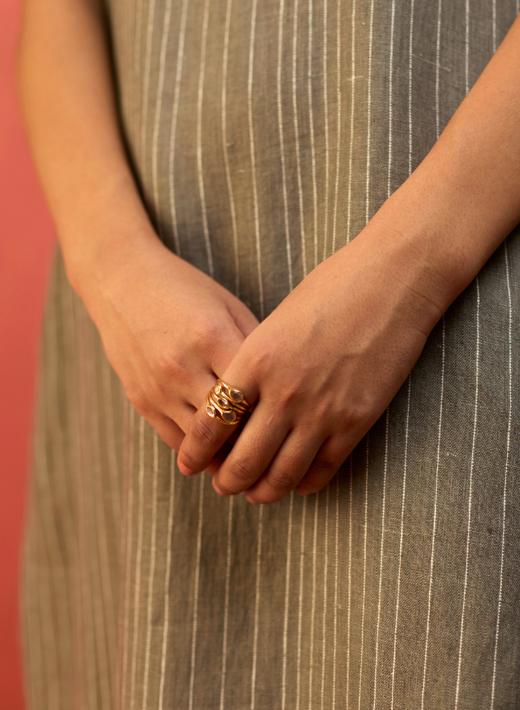 A sleeveless midi length dress with a soft parabola silhouette thoughtfully crafted in a soft yarn-dyed pinstripe linen. Designed with a center back slit for easy movement, a comfortable fit and pockets while maintaining the shaped silhouette. The Juro dress is finished with frayed contrast woven selvedge detailing along the bottom hemline and extended piping detail along the sleeve hems. The model is 5'7" and is wearing a size S.