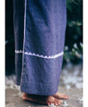 A classic A-line skirt with an up-cycled applique detail at the hem and contrast piping on the side. Made in handwoven cotton featuring an elasticated waist and inseam pockets. Length 37.5". The model is 5'5" and is wearing size S.