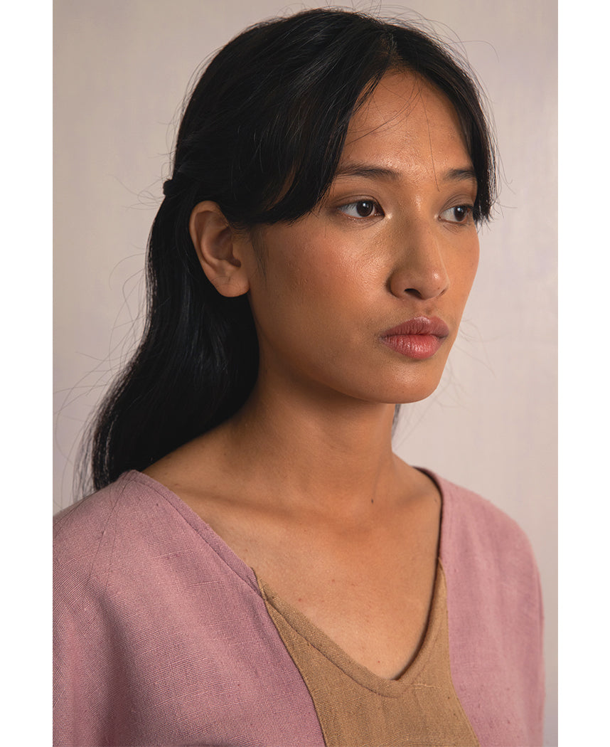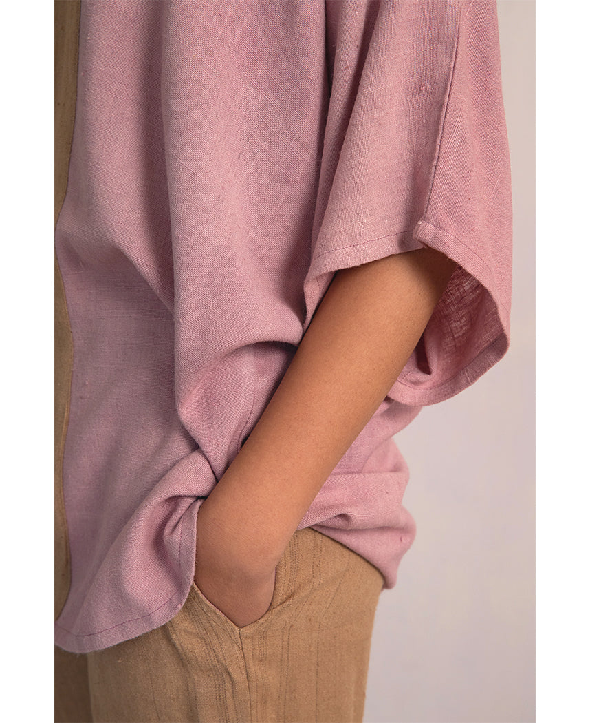 Made in Eri silk, naturally dyed. This piece is handcrafted in small batches using natural dyes. Variations in colour, texture, print and finish are inherent to the process, making each piece unique.