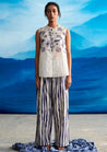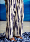 A pair of straight-fitting pants with exquisitely uneven stripes. Features a front-fly opening and inseam pockets. Length 41". The model is 5'8" and is wearing a size M.