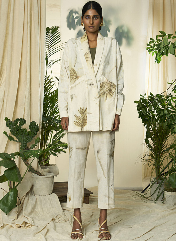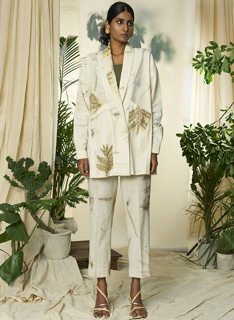 Wash separately in cold water. Use pH neutral washing soap. Do not wring. Do not tumble dry. Do not use hot iron. Do not dry in direct sunlight. Dry flat in shade. Store naturally dyed garments in a dark place.