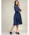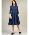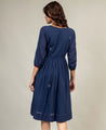 A fit and flare dress with embroidery details featuring a round neck, gathered waist, inseam pockets and a back zip closure. Length 42". The model is 5'5" and is wearing size S.