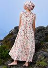 A relaxed-fitting sleeveless midi dress with Jhilmil print and V-neck featuring side pockets. Length 50". The model is 5'6" and is wearing a size M.