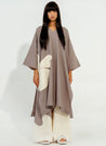 An oversized fitting tunic with hand-sewn appliqué detail featuring a V-neck and side slits. Length 43". The model is 5'8" and is wearing size S.