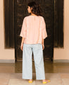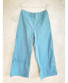 Classic wide leg trousers made in 100% cotton. Features a front zipper, elasticated back and inseam pockets. Length 35". The model is wearing size S.