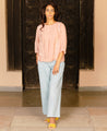 Gentle hand wash in cold water with mild detergent. Do not bleach. Low hear iron.