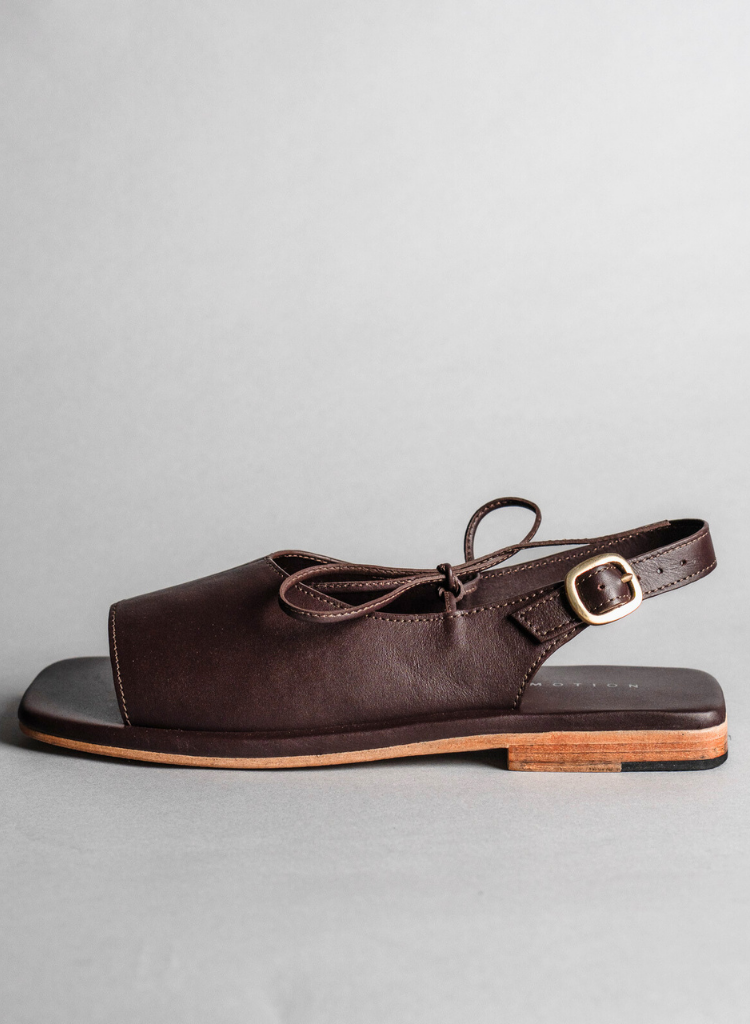 Inspired from Japanese craftsmanship & handcrafted with soft, textured leather, these sandals feature a distinctive tie-up detail that can be styled as you prefer—tied at the front like a shoelace or wrapped elegantly around the ankle. The open square-toe design and cushioned footbed offer all-day comfort, while the slip-resistant leather - rubber outsole ensures a confident stride. Lightweight and versatile with a refined, contemporary silhouette.