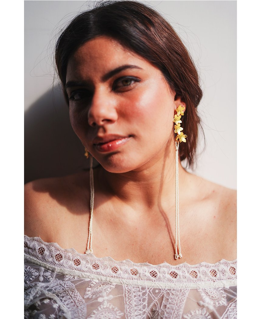 The Mogra Cuffs come with a detachable two layer glass beaded string. A versatile piece for you to wear multiple ways. Handcrafted in brass.