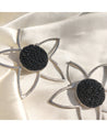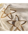 A beautiful pair inspired by the line drawing of the flower. A cluster of beads in the center, framed with brass. Length: 8.5 cms.