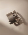 A minimal ring crafted to look like two stacked rings. Inspired by the shape of pencil shavings and featuring a small cluster of glass beads. Adjustable. Handcrafted in brass with nickle plating.