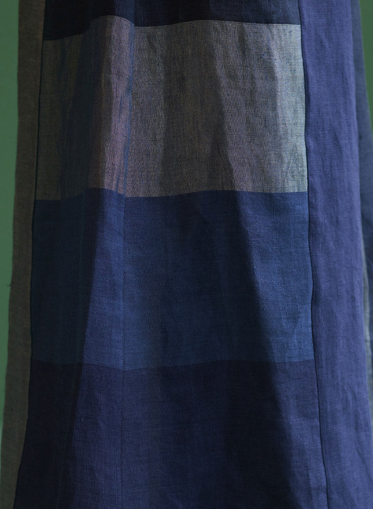 A pair of metallic broad striped relaxed-fitting culottes with horizontal woven stripes on the side and vertical woven stripes on the center front and center back. The statement pants have a drawstring waist with an elasticated back waistband. Length 36". The model is 5'8" and is wearing a size S.