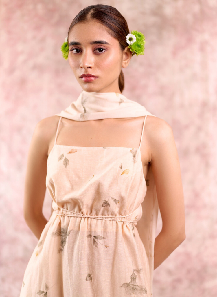 A statement piece designed to flow effortlessly with every movement. This tunic with side slits features delicate shoulder straps, a deep back with cross-string detailing, and an adjustable drawstring waist for a custom fit. Length 39". The model is 5'7" and is wearing size S.